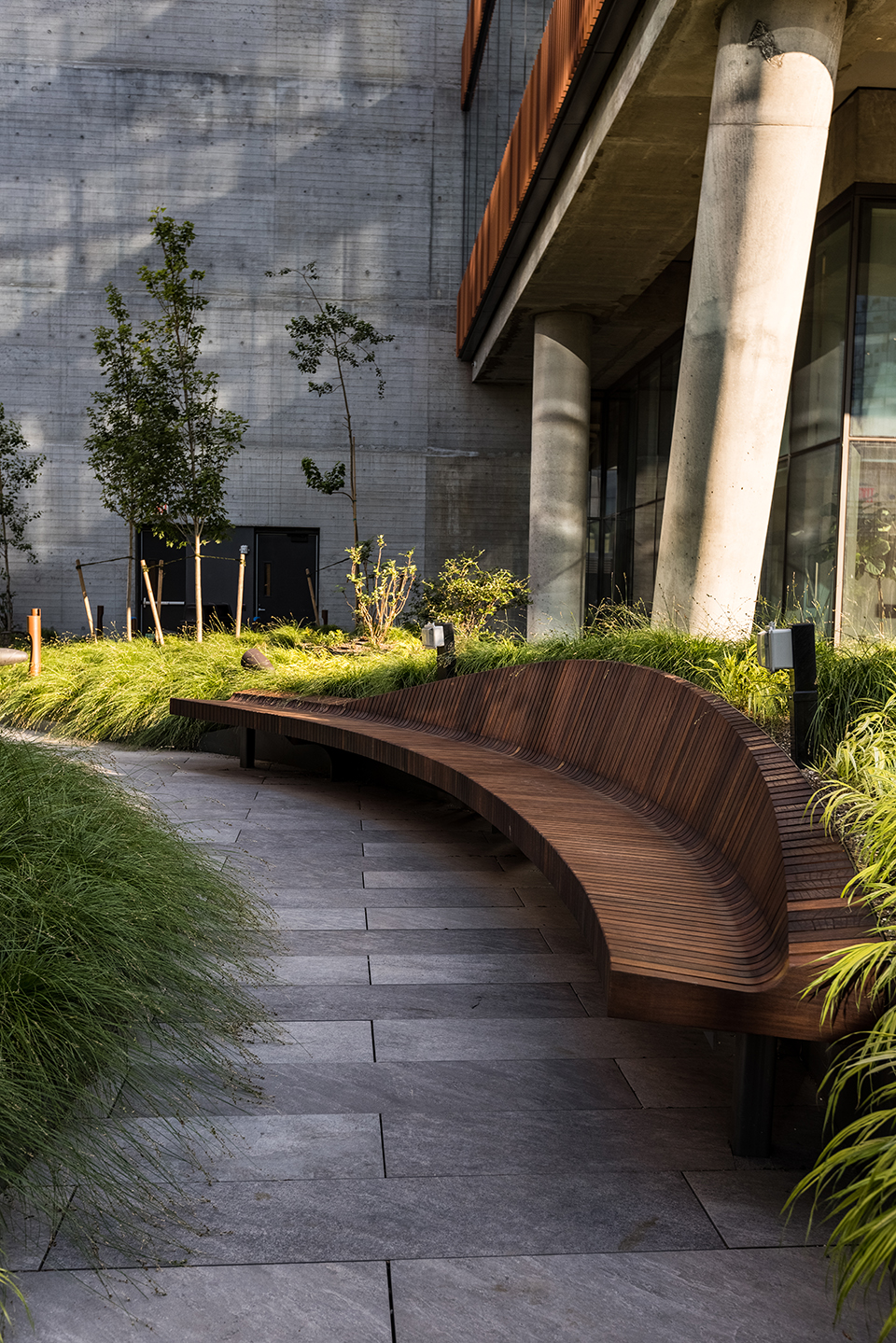 The SL Bench pairs a sculptural crescent form with practical durability. Its slim wood slats and modular curve support versatile layouts—ideal for plazas, campuses, and other high-use environments.